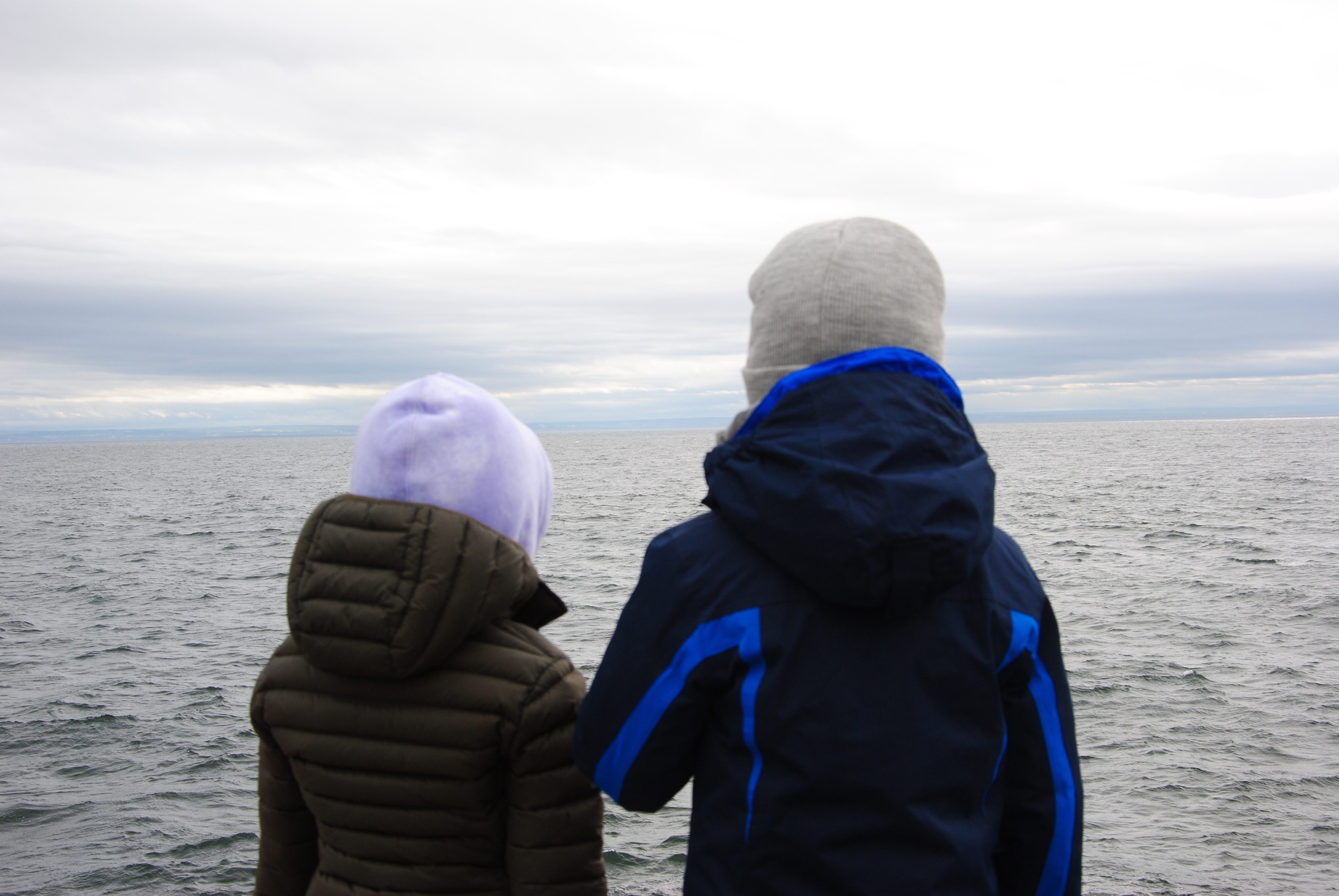 Puis tu arrives avec ta petite famille devant le fleuve et c’est beau, c’est sauvage, apaisant. Oui, mais eux ils sont venus voir des baleines alors hop hop hop on s’active – apaisant le lieu – et on va les voir. Enfin, on va aller aux endroits déterminés pour les observer en espérant que des mammifères marins se montrent…mais eux ne voient pas les choses comme toi.